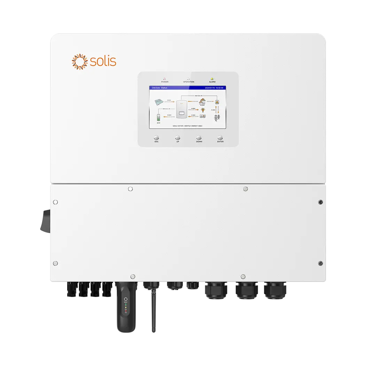 De Solis S6 12 kW hybride omvormer is een krachtige en slimme 3-fase omvormer voor huishoudens en zakelijke toepassingen die zonnepanelen en een hoogspannings-­thuisbatterij willen combineren. Deze omvormer vormt het centrale brein van uw energiesysteem en regelt efficiënt de opwek, opslag en het verbruik van stroom.
